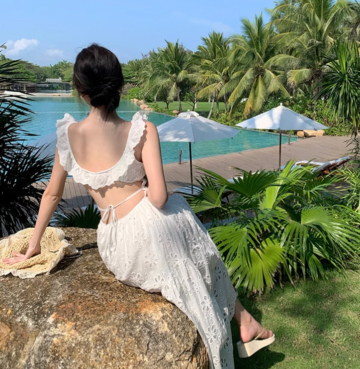 Simple Fashion White Floral Design Ruffled Collar A-Line Dress HZ1024