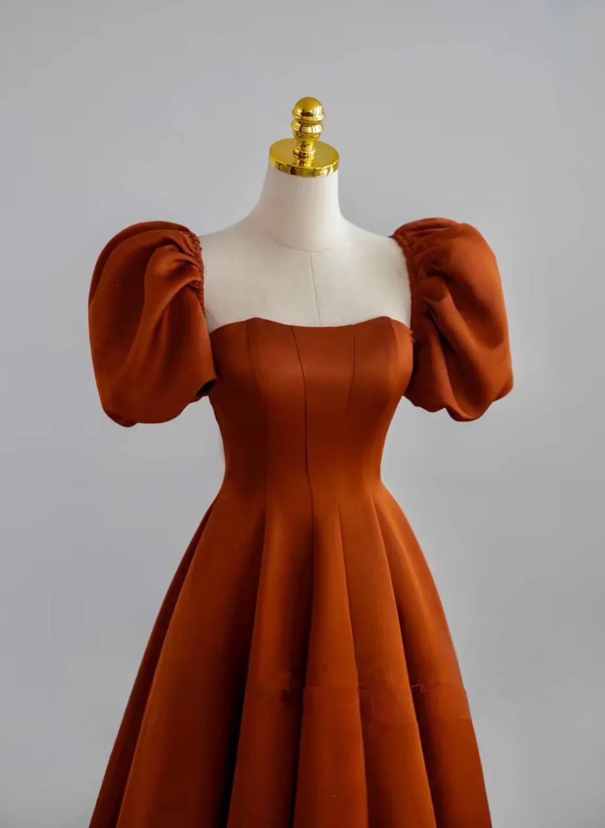 A-line Satin Short Prom Dress Party Dress, Satin Short Sleeves Evening Dress HZ1024