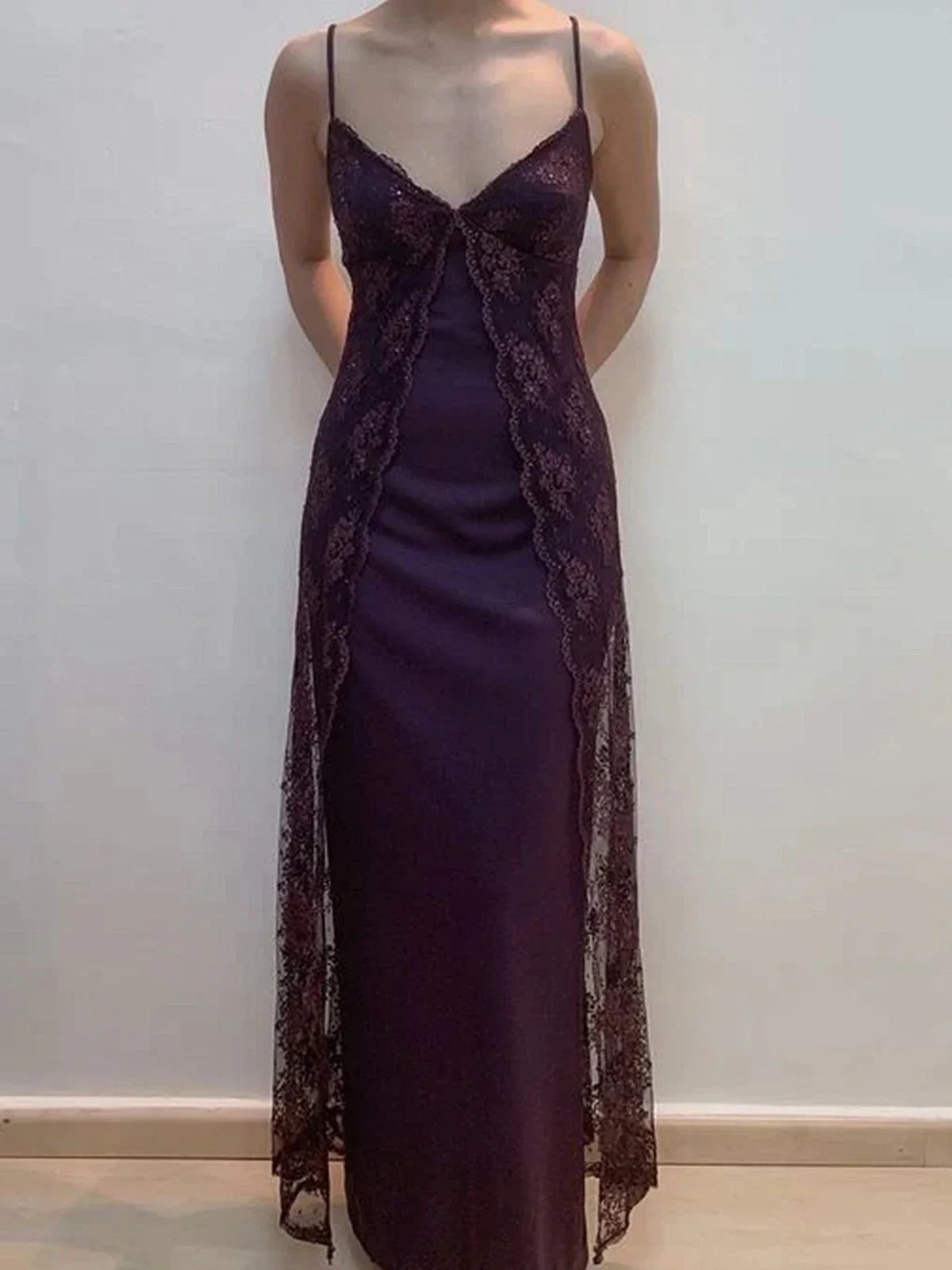 Charming V-neckline Purple Lace Straps A-line Prom Dress, Purple Long Formal Dress HZ1024
