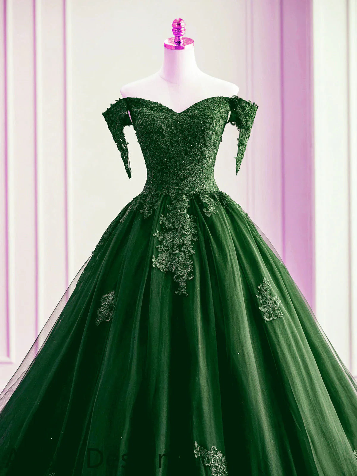 Dark Green Off Shoulder Tulle with Lace Sweet 16 Dress, Dark Green Formal Gowns HZ1024