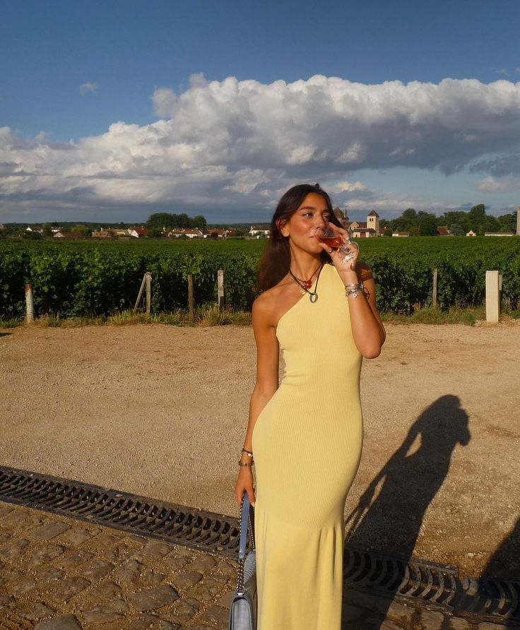 Elegant Light Yellow Mermaid One Shoulder Sleeveless Knitted Drape Long Dress HZ1024