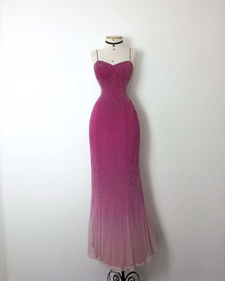 Gradient Pink Mermaid Spaghetti Strap Sequined Sparkling Long Ball Gown HZ1024