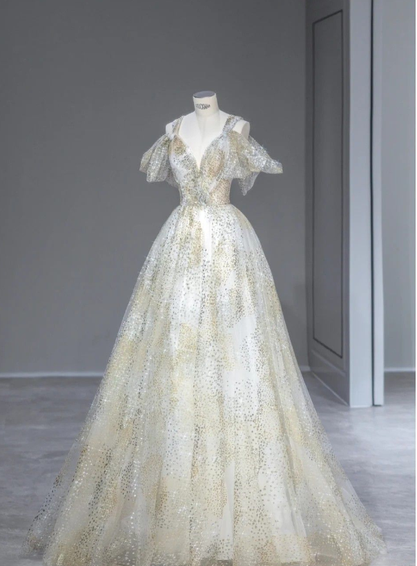 Green A-line Strap Sequined Tulle Floor Length Ball Gowns HZ1024