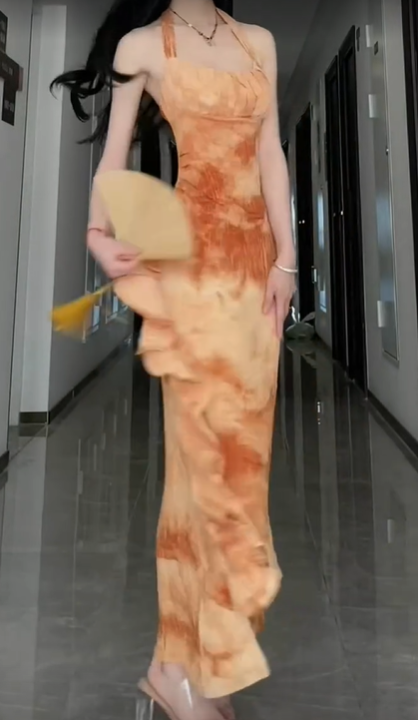 Orange Mermaid Neckline Strapless and Ankle Length Ball Gowns HZ1024