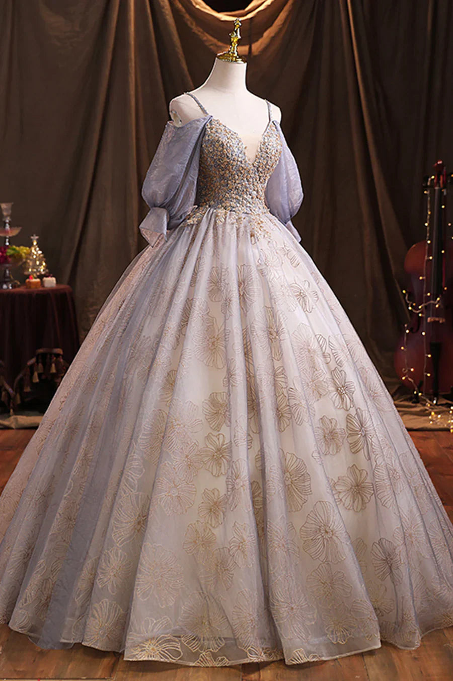 Purple Tulle Sequins Long Prom Dress, A-Line Evening Dress HZ1024