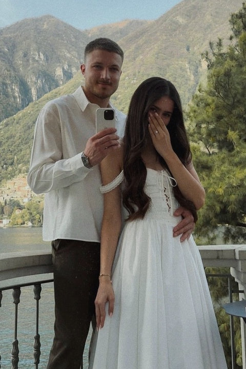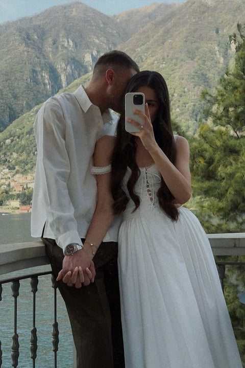 Simple white A-line off-shoulder tie tea dress HZ1024