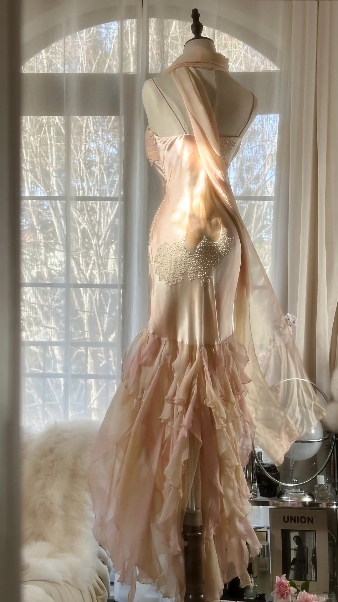 Vintage Mermaid Beaded Floral Design Romantic Chiffon Evening Dress Prom Dress HZ1024