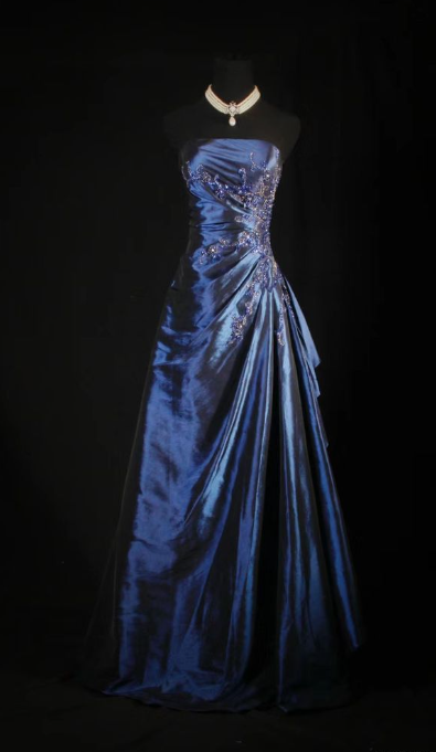 Vintage Navy Off Shoulder Satin Long Ball Gown Evening Dress HZ1024