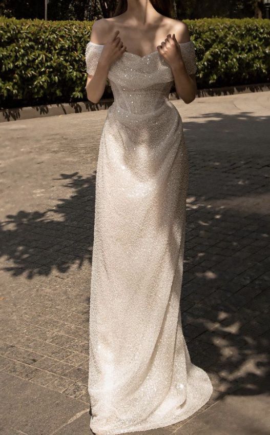 White A-Line Strapless Bright Beaded Floor Length Prom Dresses HZ1024