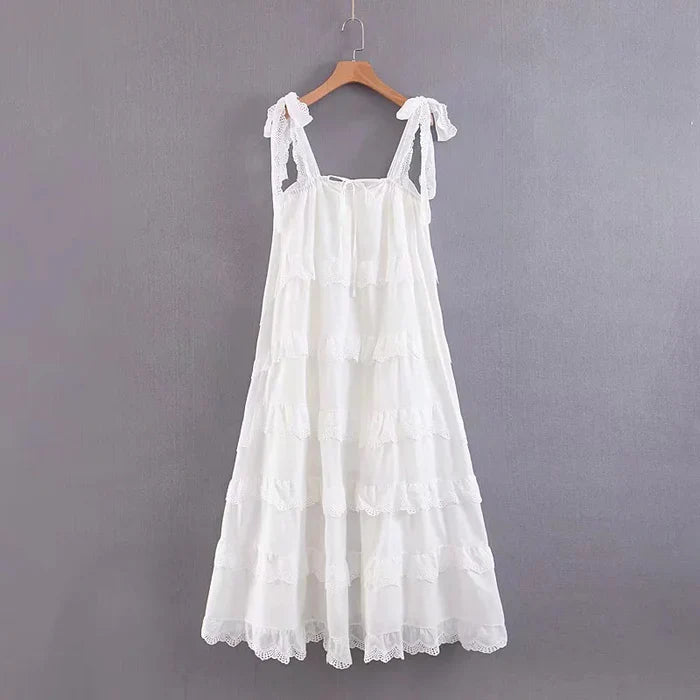 White sleeveless halter ruffled maxi dress HZ1024